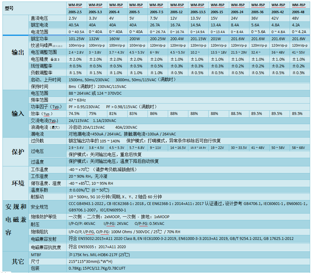 1.如未特别说明,所有规格参数均在输入为230VAC、额定负载、25℃环境温度下进行量测。