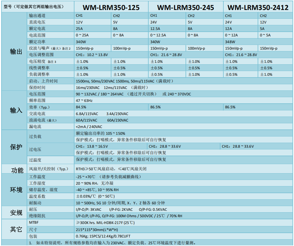 WM-LRM350系列开关电源特性: