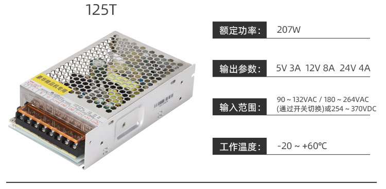 输入范围:85 ~ 132VAC / 180 ~ 370VAC