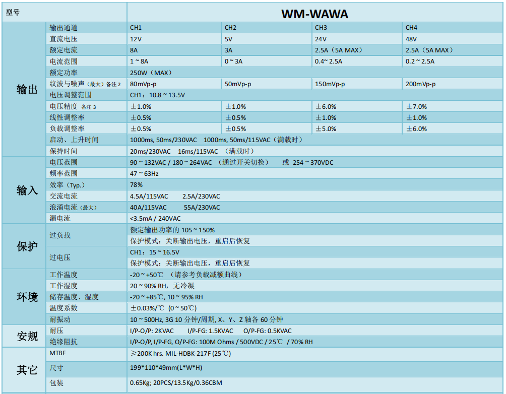 1.如未特别说明,所有规格参数均在输入为230VAC、额定负载、25℃环境温度下进行量测。