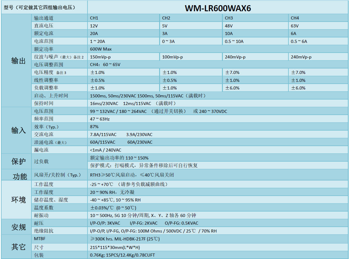1. 如未特别说明,所有规格参数均在输入为230VAC、额定负载、25℃环境温度下进行量测。