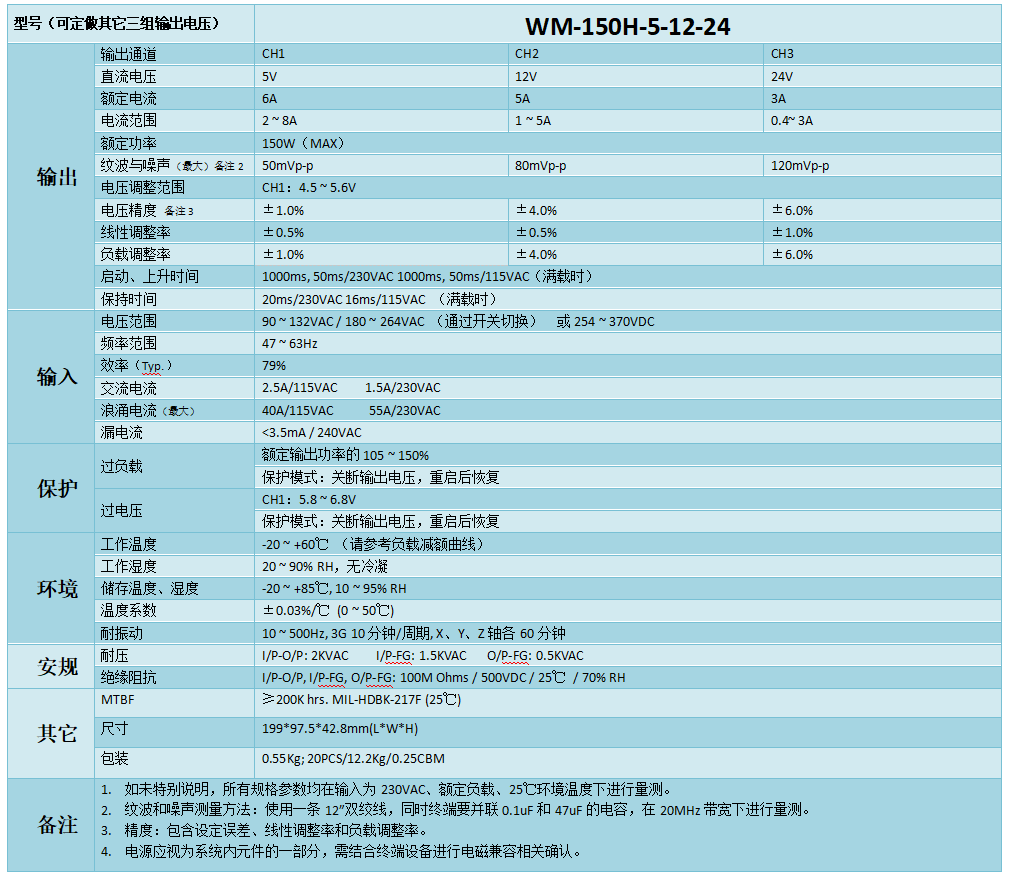 WM-150H-5-12-24开关电源温馨提示: